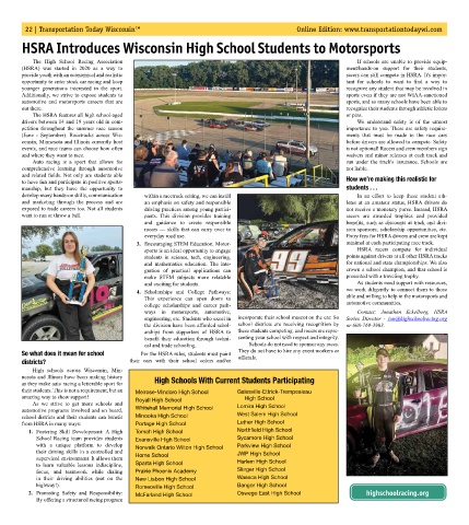 22 | Transportation Today Wisconsin™ Online Edition: www.transportationtodaywi.com
